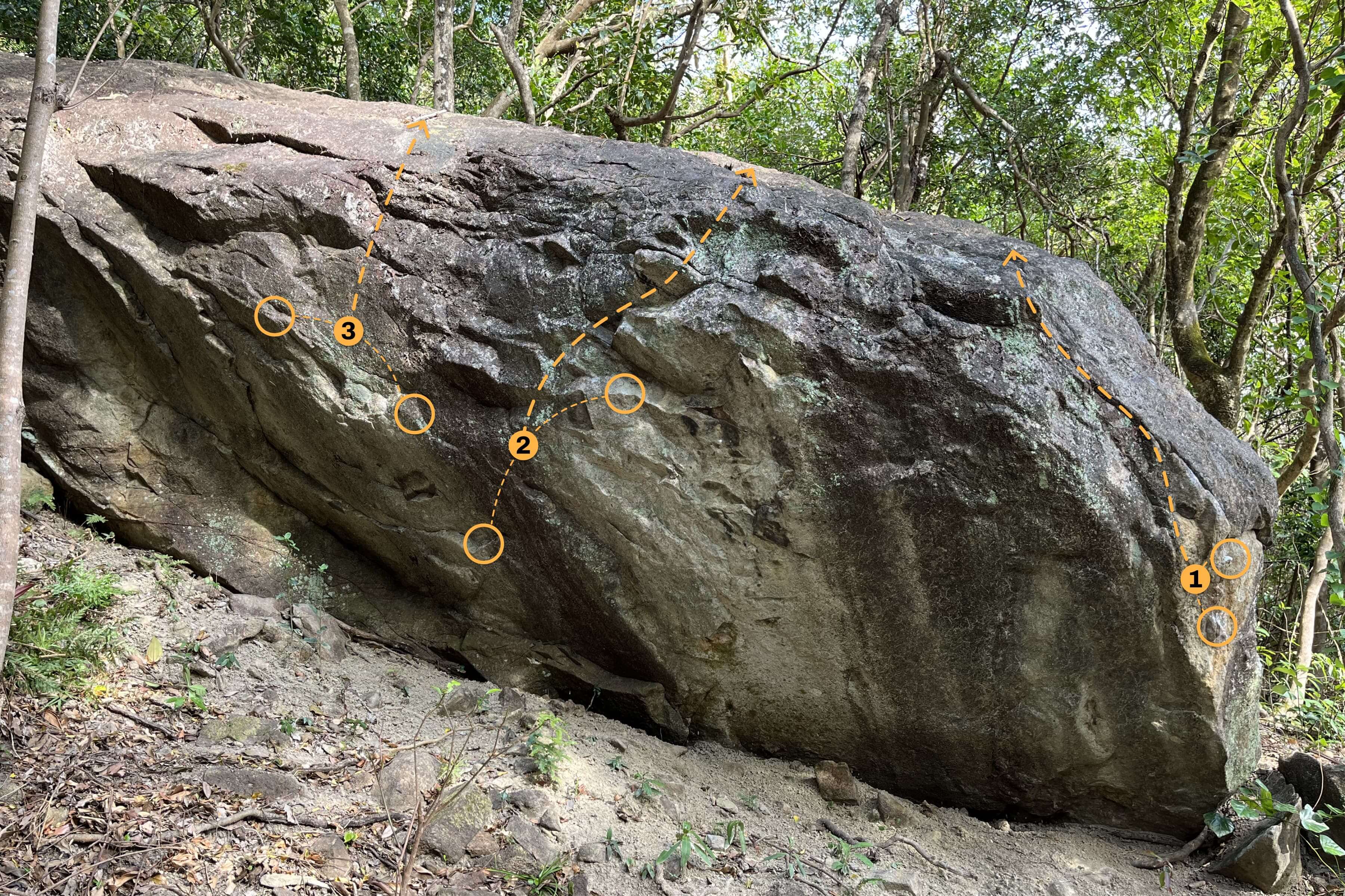 There are total 3 routes on the Ghost Blade Boulder that is located in zone 6. The boulder problems are graded V3 - V4 and rated with stars, we recommend you to come and try these problems.